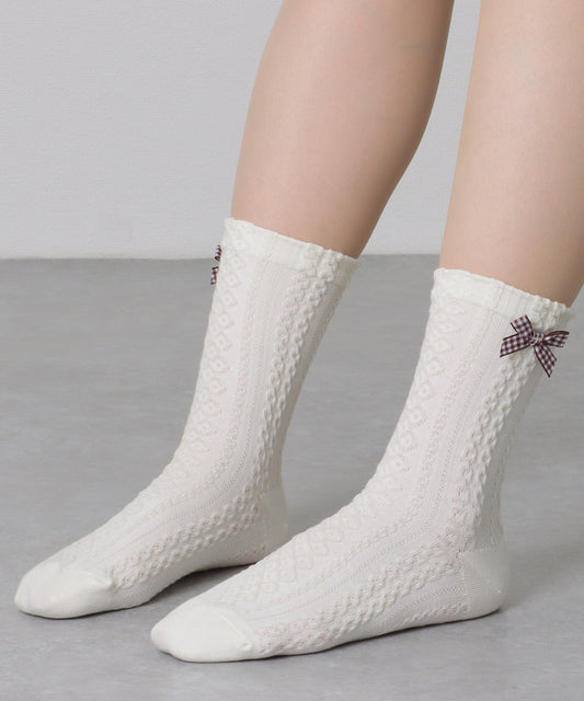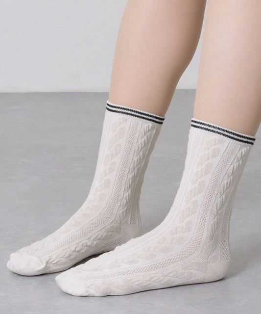 【8足セット】 配色 ライン 立体 ケーブル柄 クルー丈 ソックス