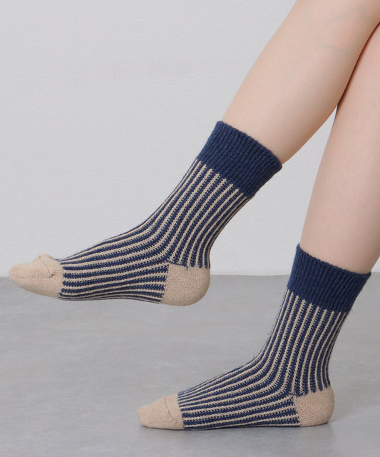 【4足セット】 配色 ストライプ柄 クルー丈 ソックス