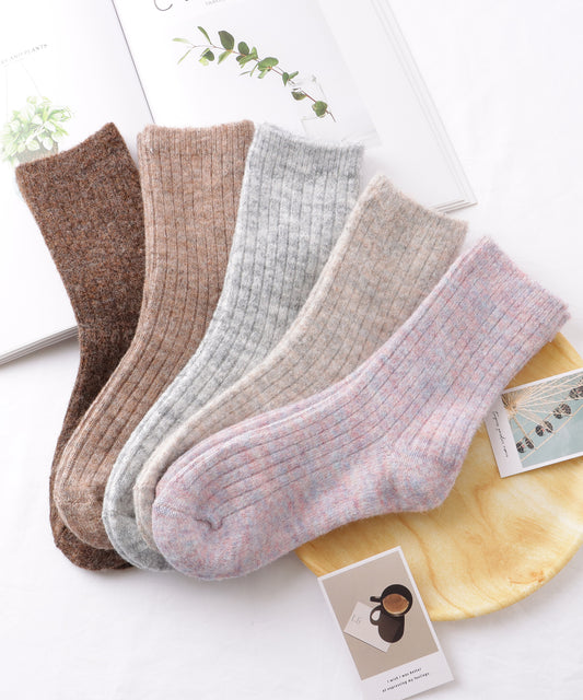 【5足セット】 杢カラー クルー丈 シンプル リブ ソックス