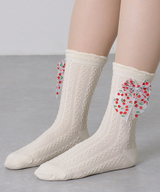 【4足セット】 立体 チェーン リボン付き クルー丈 ソックス