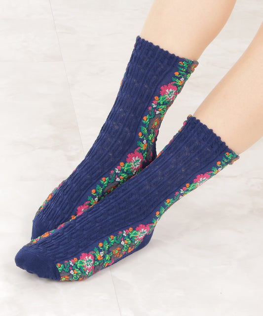 【3足セット】 ボタニカル柄 クルー丈 リブ ソックス