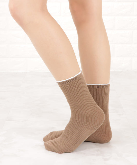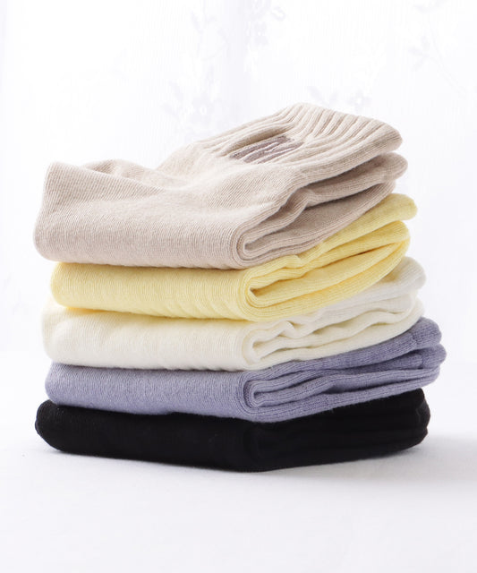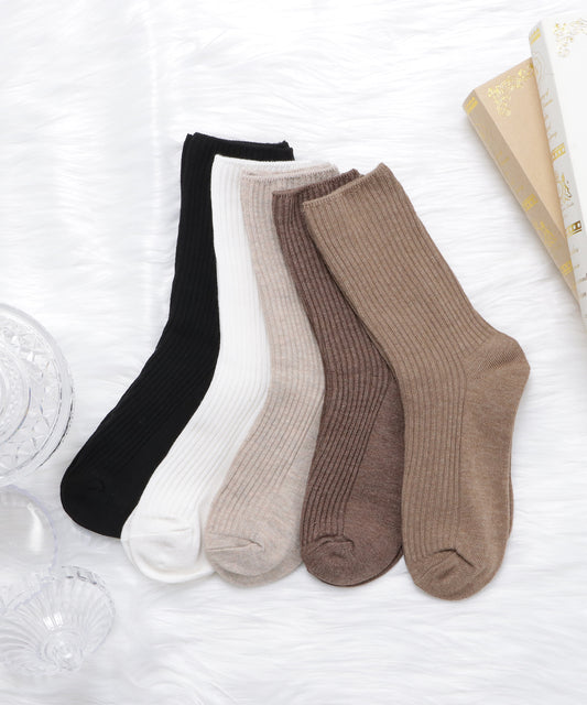 【5足組】ソリッドカラー ベーシック リブ クルー ソックス