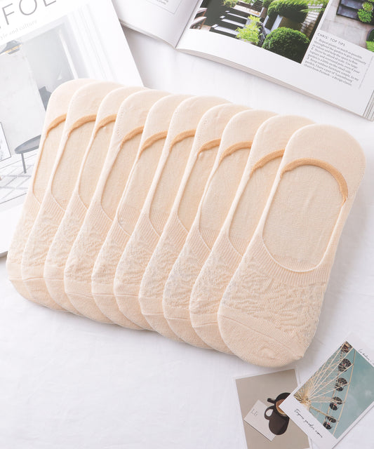 【5足組】 ソリッドカラー レース編み 滑り止め カバーソックス