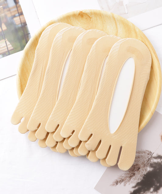 【5足組】 ソリッドカラー 5本指 メッシュ カバー ソックス
