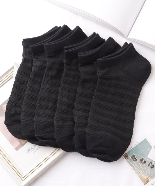 【6足組】 ソリッドカラー メッシュ ボーダー クルー丈 ソックス