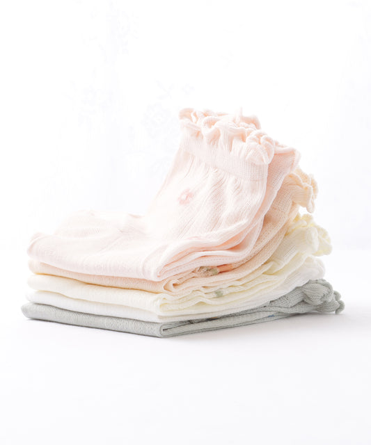 【5足組】 花柄 メロウフリル クルー丈 ガーリー ソックス
