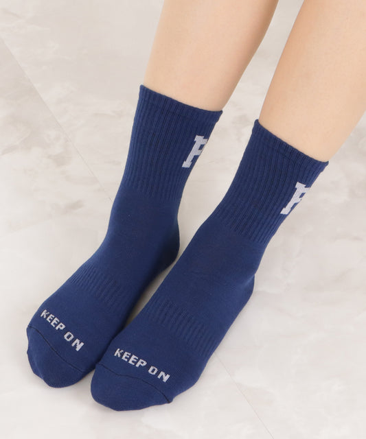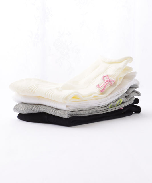 【4足組】 ソリッドカラー リボン刺繍 リブ クルー ソックス