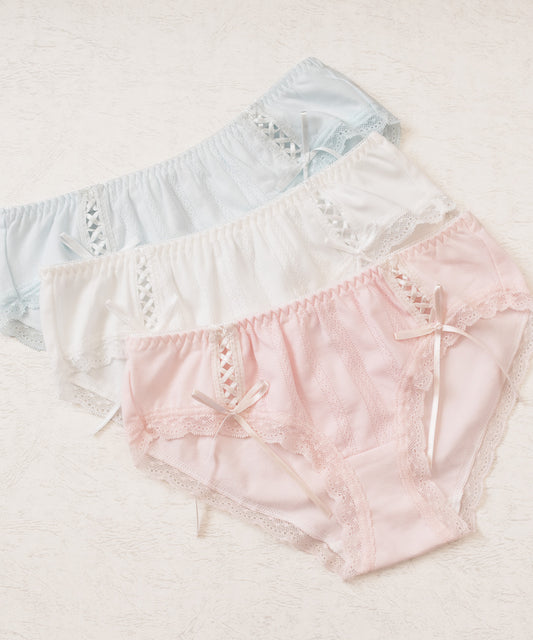 【3色組】セットでお得♪ショーツ 3色3枚セット 綿混 シフォン レース パステルカラーショーツ