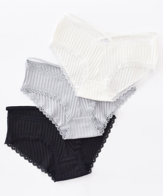 【3色組】セットでお得♪ショーツ 3色3枚セット 綿混 リブショーツ