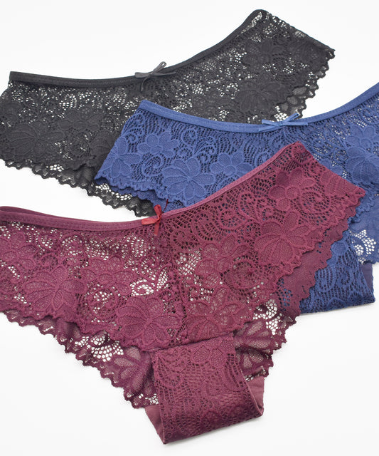 【3色組】セットでお得♪ショーツ 3色3枚セット レースの透け感が華やかな総レースTバックショーツ