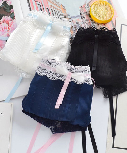 【4色組】セットでお得♪ショーツ 4色4枚セット アンティークなレースとリボンが可愛いレースショーツ