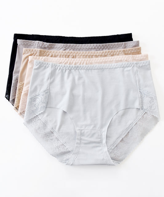 【5色組】セットでお得♪ショーツ 5色5枚セット さわやかなメッシュ生地のシルクタッチレースショーツ