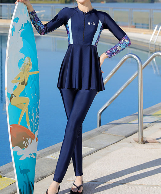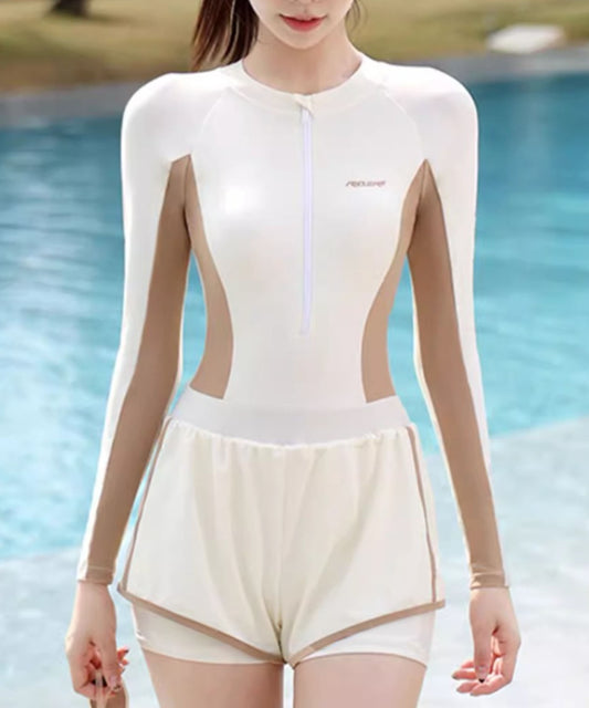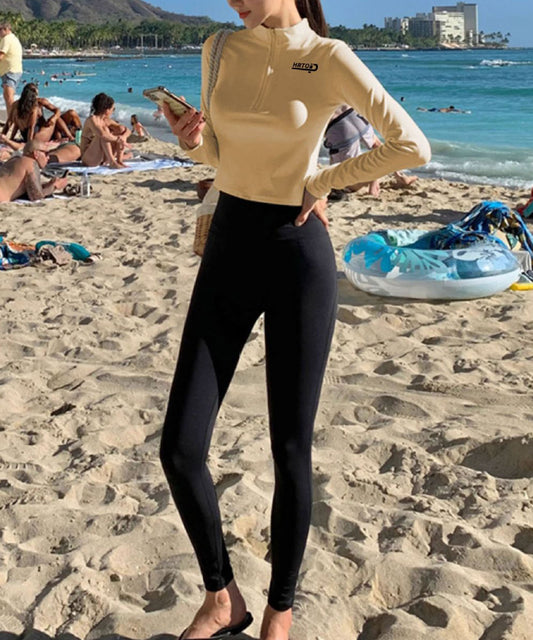 【2点セット】ハーフジップ ハイウエスト ワンピ風 長袖 ラッシュガード
