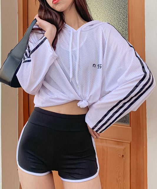 【3点セット】 メッシュ フード パーカー付き スイムウエア