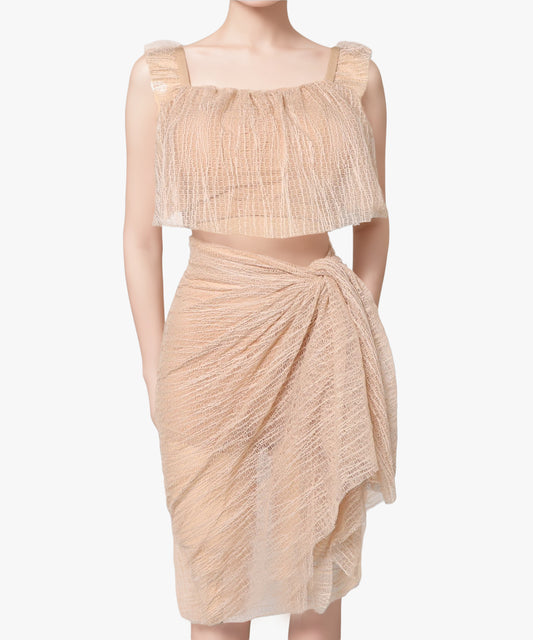 【2点セット】 サイドシャーリング ティアード フリル スカート 水着