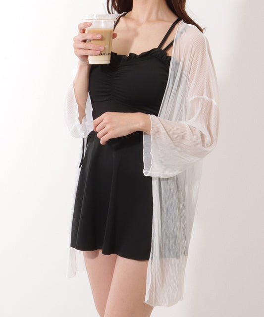 【2点セット】パレオ付き フェイクレイヤード シアー スイム ワンピース