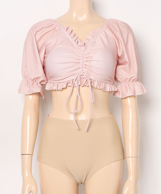 【2点セット】 シアートップス付き フロント レースアップ スイムウエア