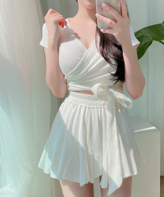 【3点セット】フロント レースアップ フリル ビスチェ風 スカート タンキニ