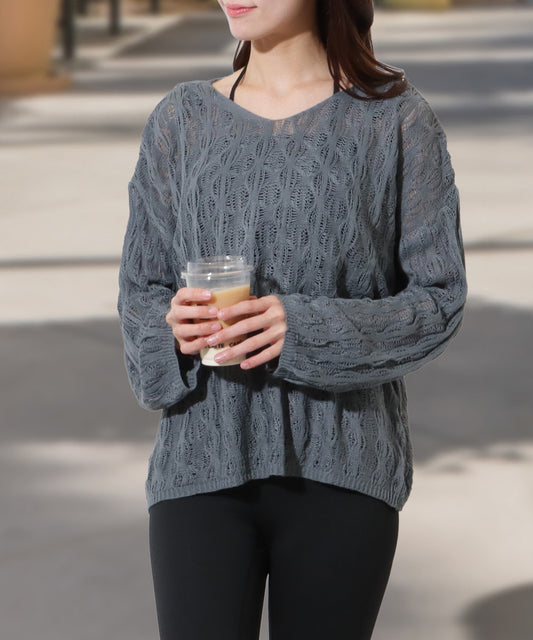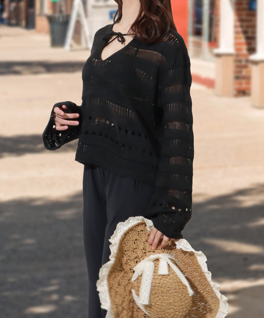 【2点セット】コンパクト 透かし編み ニット ラッシュガード