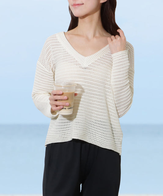 【3点セット】Vネック 透かし ニット プルオーバー 付き ラッシュガード