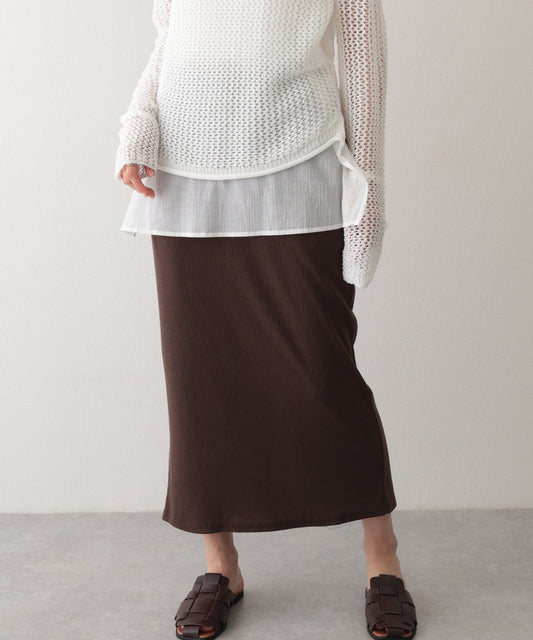 ソリッドカラー ウエストイージー リブ ロング スカート