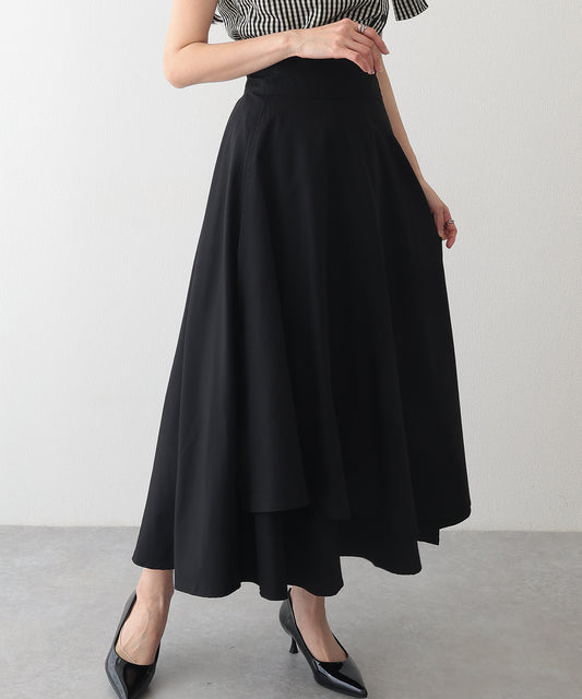 ハイウエスト ダブルヘム ドレープ ロング スカート