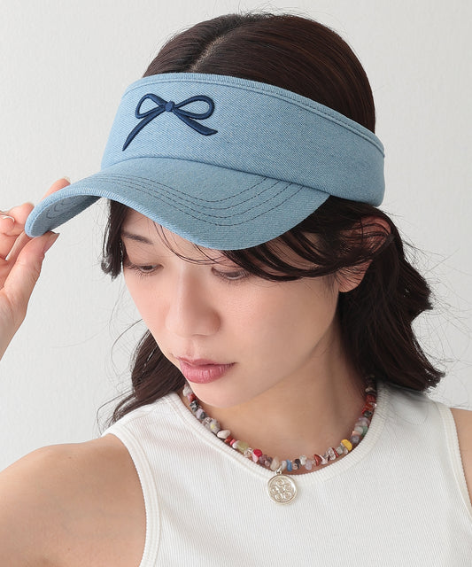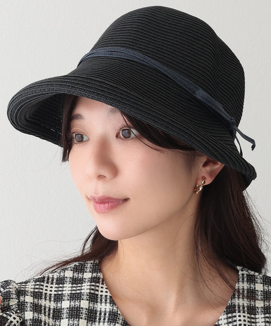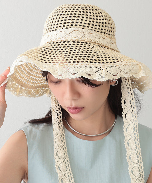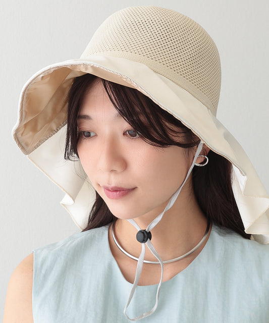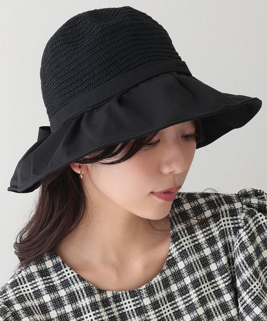 異素材 メッシュ編み バックリボン サンシェード ハット