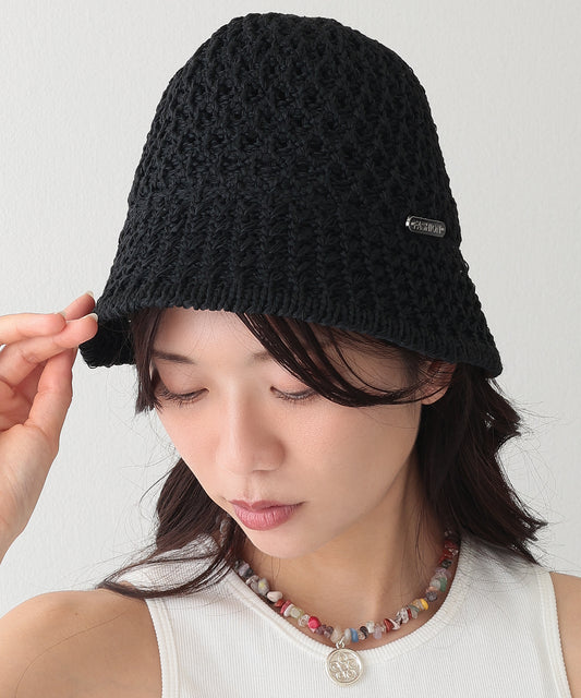 プレート付き ソリッドカラー ニット メッシュ バケットハット