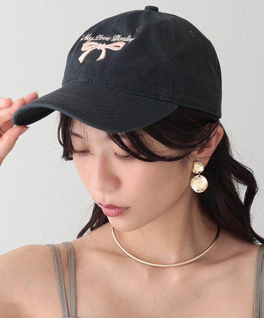 リボン 刺繍 ソリッドカラー ベーシック キャップ