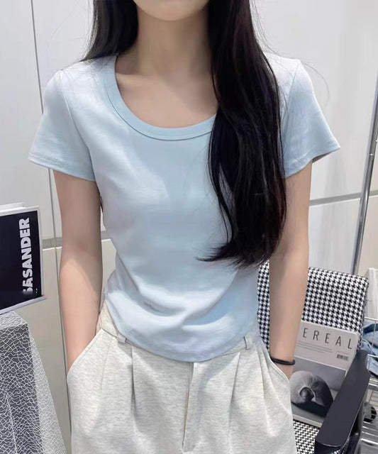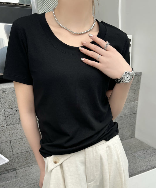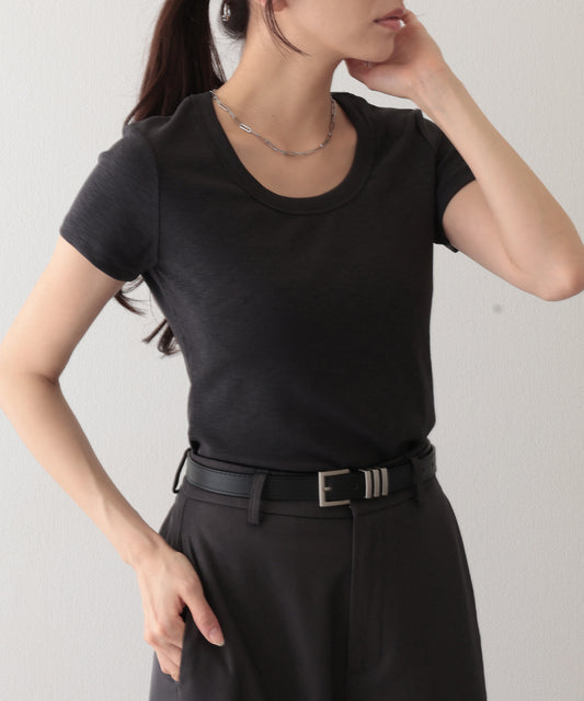 ラウンドネック バック カットアウト 半袖 Tシャツ