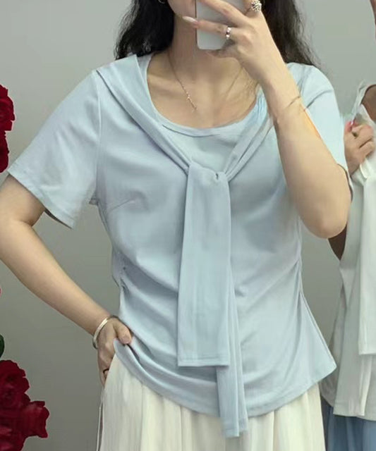 ボウタイ リボン クルーネック 半袖 Tシャツ