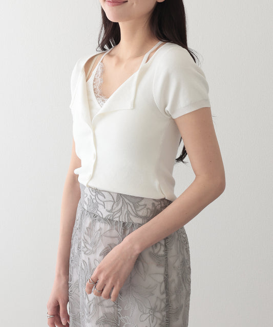レース付き ブラトップ ドッキング 半袖 ニット カーディガン