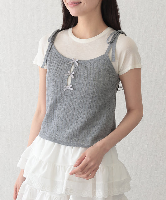 リボン付き キャミソール ドッキング 半袖 Tシャツ