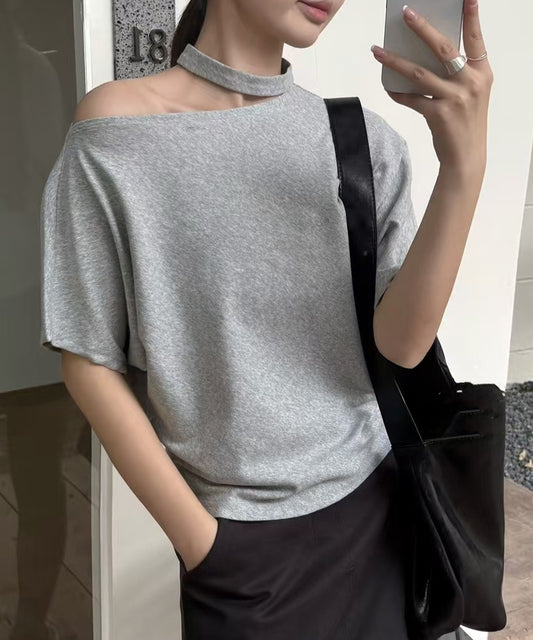 ワンショルダー チョーカー ドルマンスリーブ 半袖 カットソー