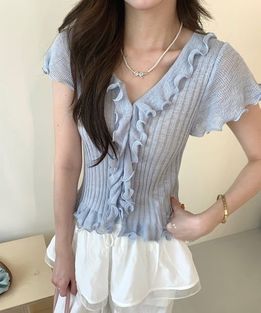 フロント フリル メロー リブ ニット トップス