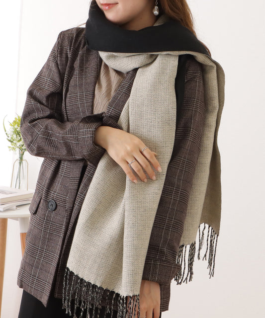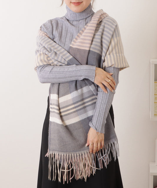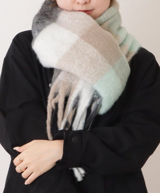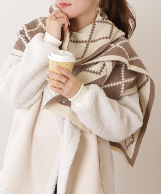 バイカラーダイヤチェック柄大判ニットストール