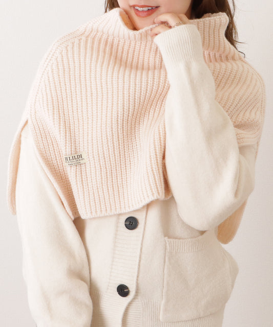 スリット入りローゲージハイネックニットケープ