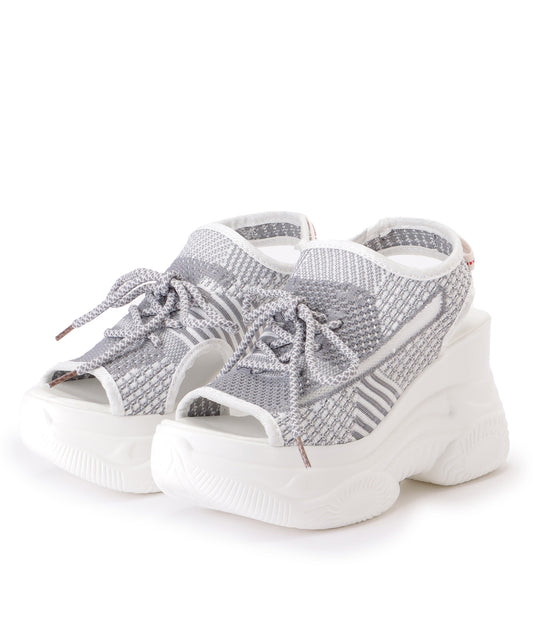 メッシュ レースアップ 厚底 スニーカー サンダル