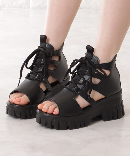 厚底 カットアウト オープントゥ サンダル ブーツ