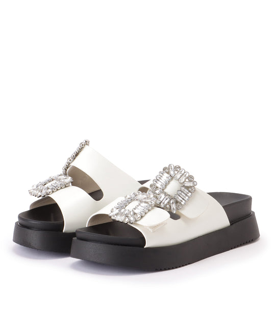 ビジュー付き ダブルベルト フラット コンフォート サンダル