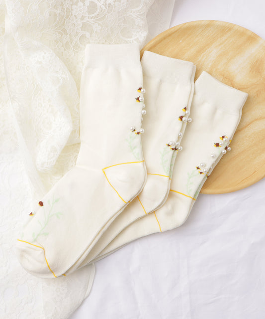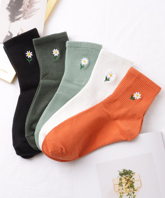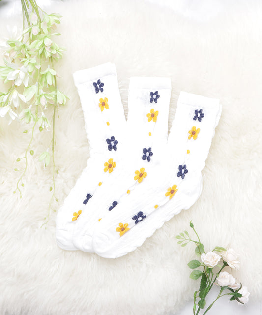 【10足セット】 ワンポイント フラワー 刺繍 リブ クルー ソックス