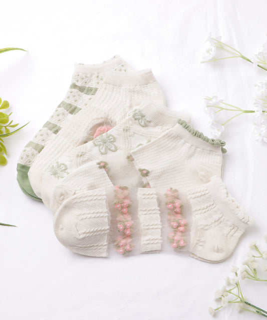 【5足セット】 リボン 刺繍付き レース クルー丈 ソックス