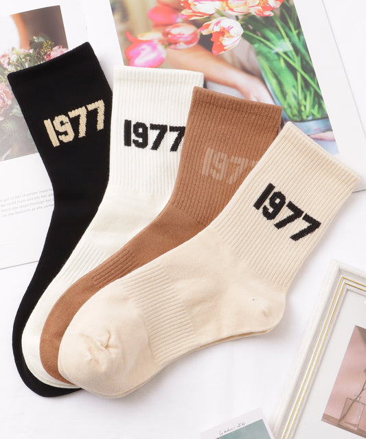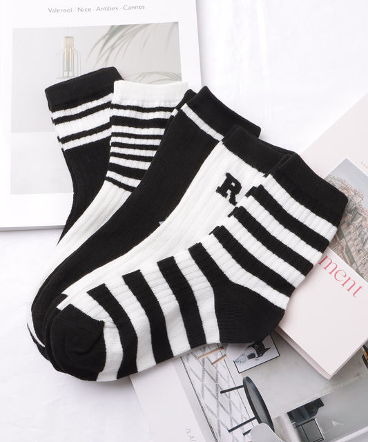 【4足セット】ナンバー ロゴ リブ クルー ソックス