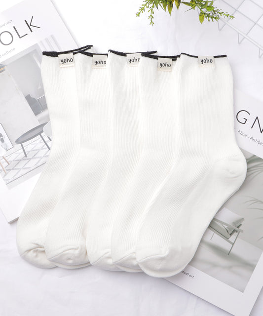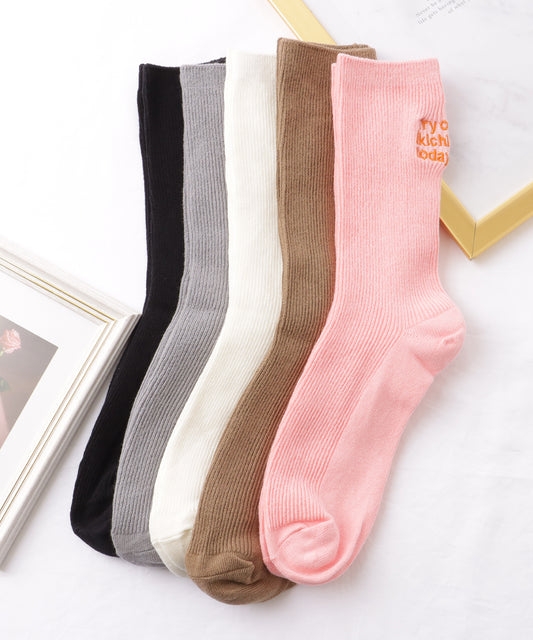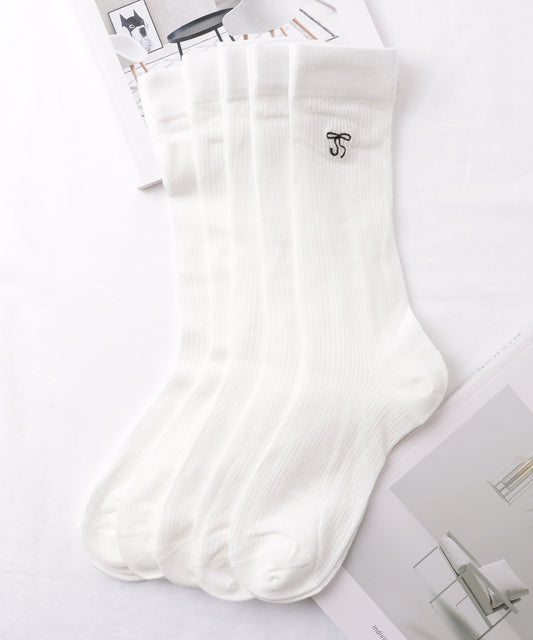 【5足セット】 バック 刺繍 ロゴ リブ クルー ソックス