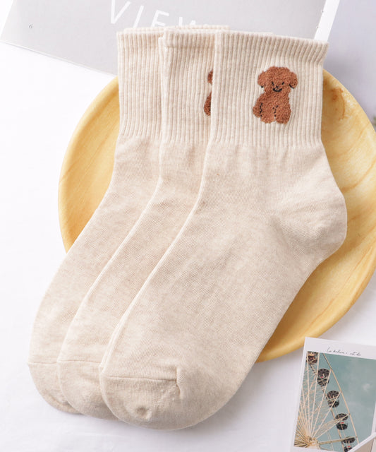 【3足セット】 ワンポイント ドッグ付き リブ クルー ソックス