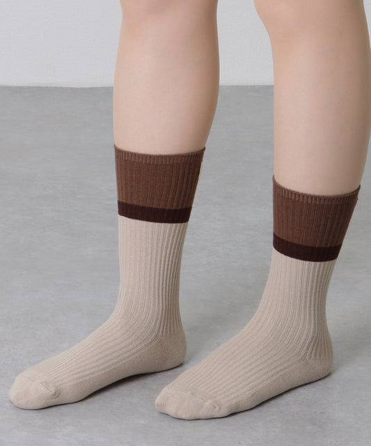 【4足セット】 タグ付き 配色 ブロック リブ クルー ソックス