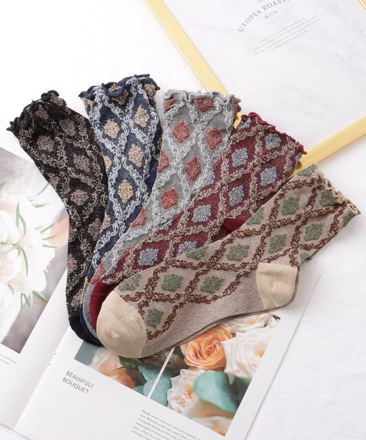 【5足セット】 メロウ フリル ダマスク柄 立体 クルー ソックス