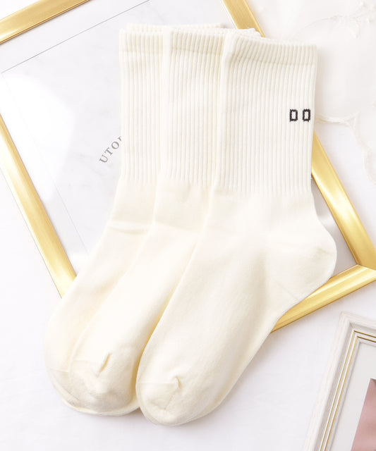 【3足セット】 ソリッドカラー バック ロゴ リブ クルー ソックス