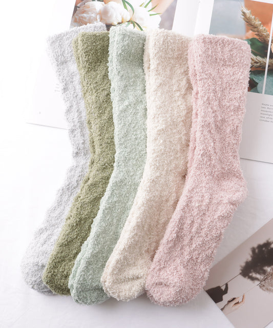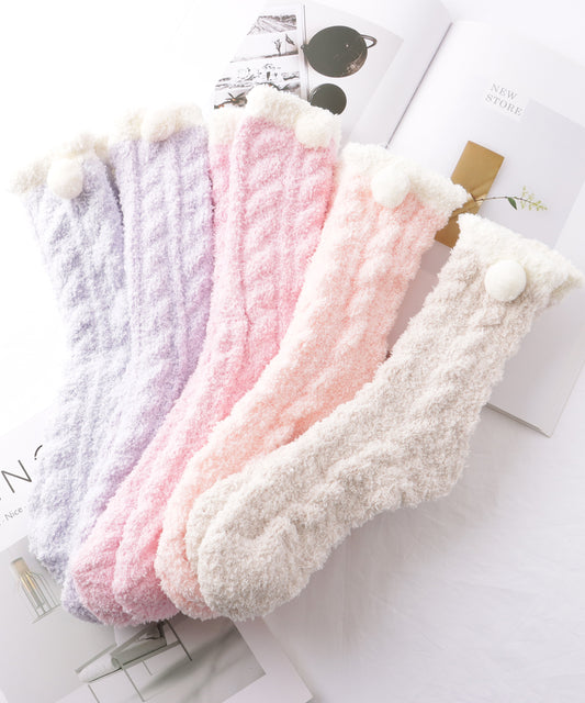 【5足セット】 ソリッドカラー ケーブル柄 ふわもち ルーム ソックス