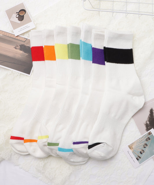 【7足セット】配色ラインリブクルーソックス